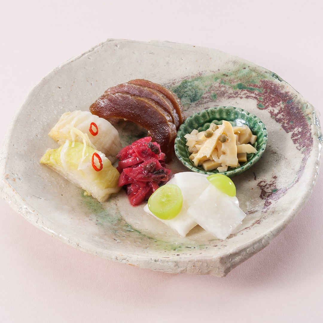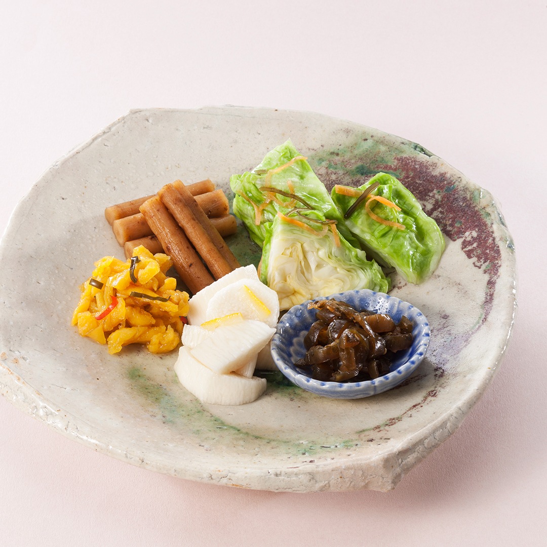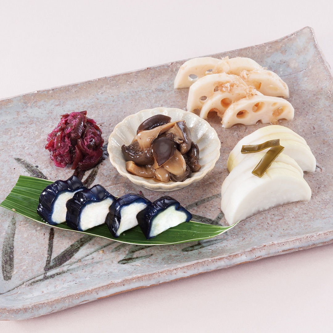 ■赤かぶら切漬・ゆず酢長いも・細ごぼう・はりはり漬・お茶漬胡瓜
